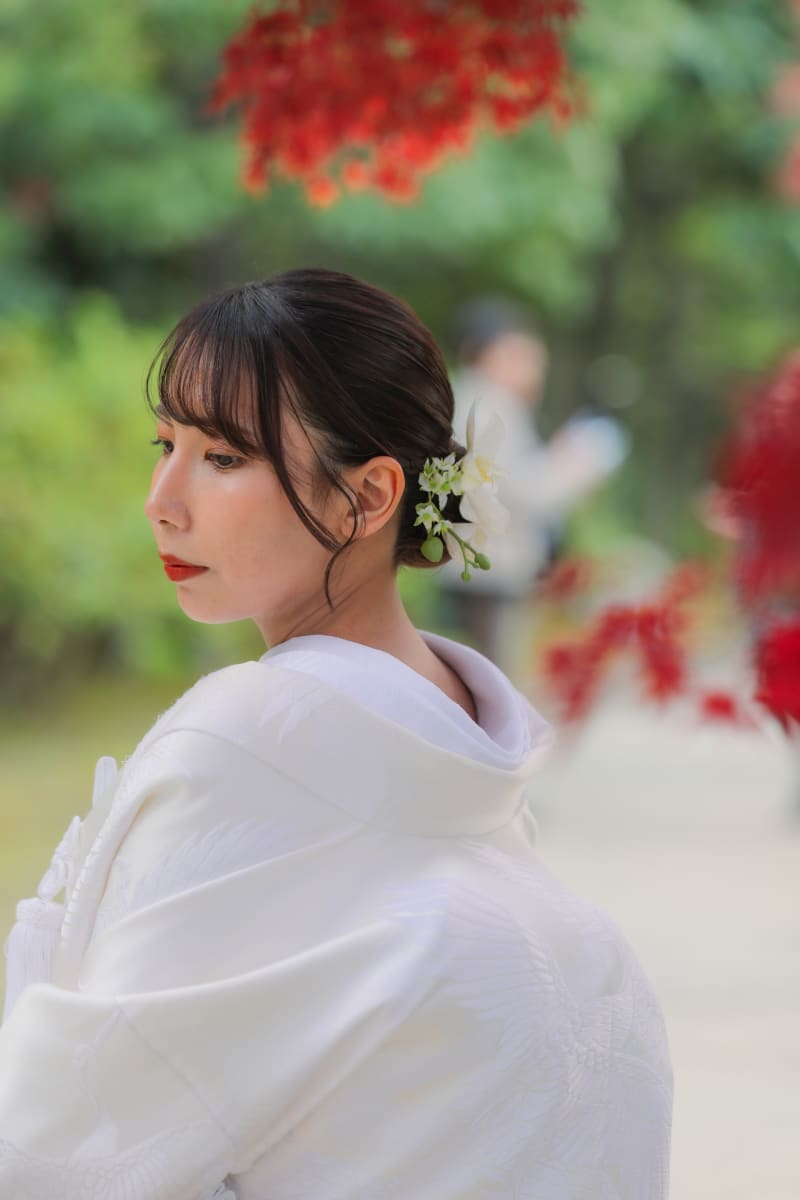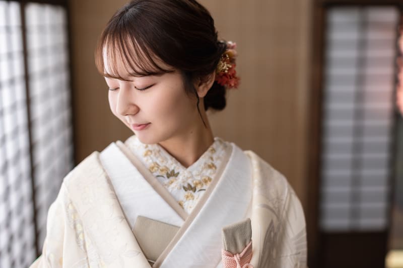このように同じ白無垢のちょっとした色味の違いや、小物コーディネートによって合わせる雰囲気がガラッと変わります。