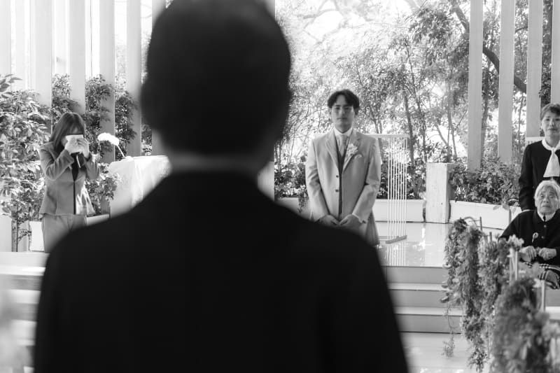 バージンロードを歩いて行くシーンではシャッターを切りながら泣かないように必死でした笑