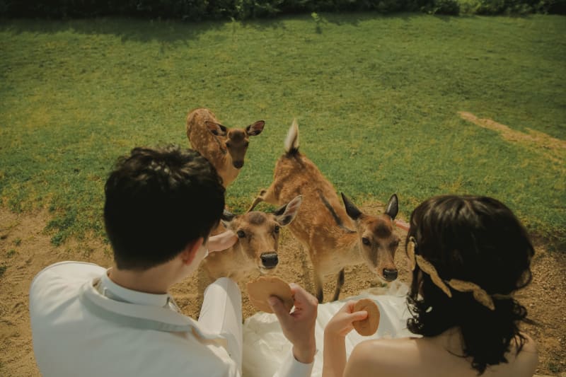 若草山で鹿とパシャリ♪ 【洋装ロケ】