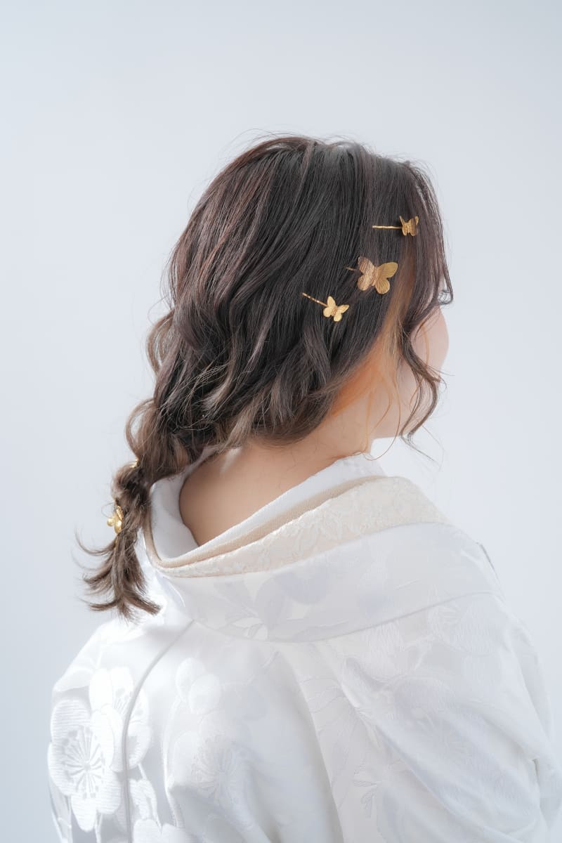 髪型はタイトにまとめてざっくり枝を刺してみました ♪