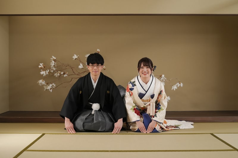 紋服は上の羽織と下の袴を組み合わせることで、ガラッと雰囲気を変えてお召しいただけますよ^ ^