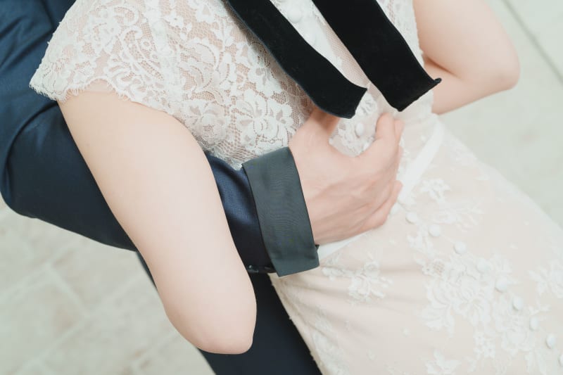 新婦様の背中越しのショットは、ドレスの綺麗な刺繍もばっちり!!