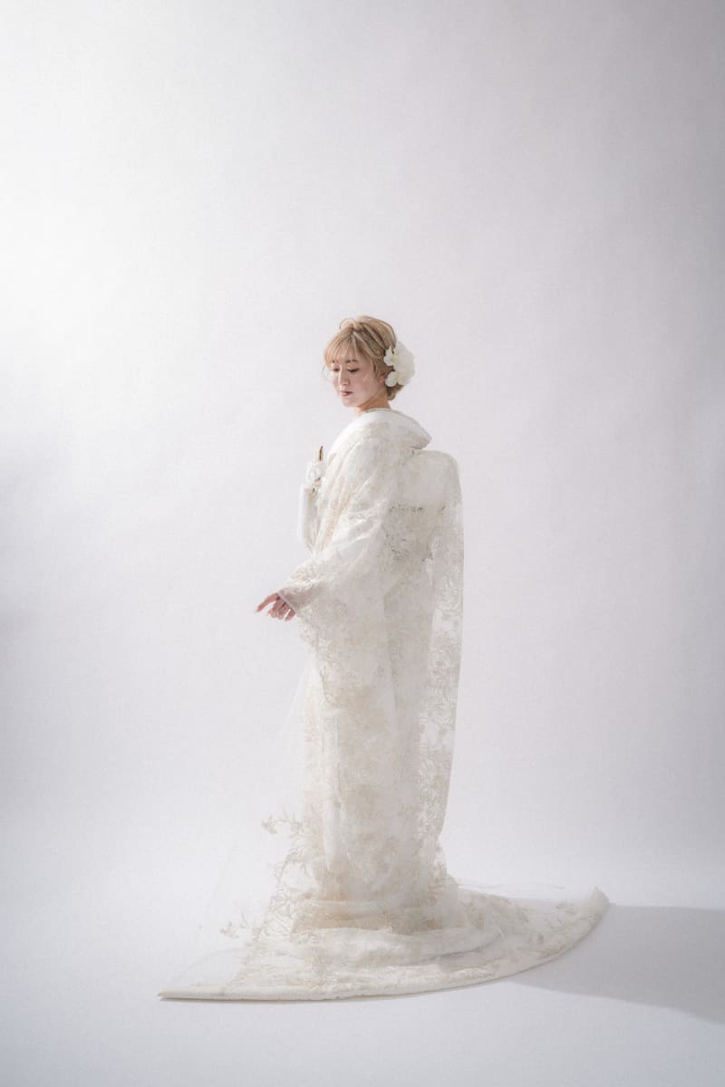 オーガンジーの生地はよく見かけるのですが、レース調の打掛はなかなかお見えにならないのでとってもおすすめです♡