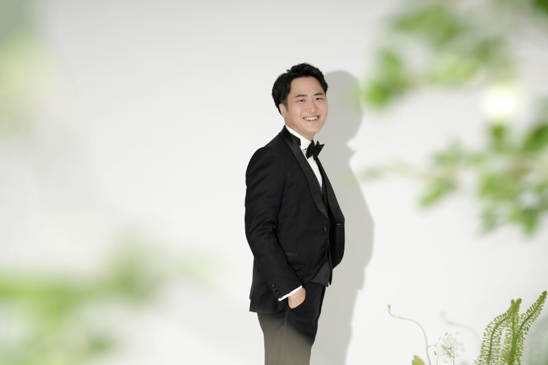 ポケットに手を入れて、かっこよく新郎様のソロショット撮影。