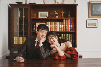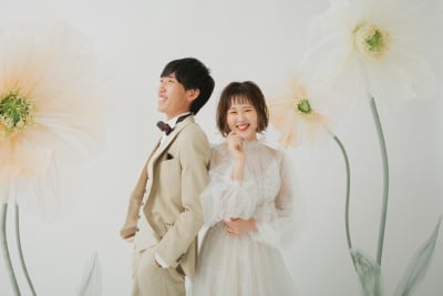▼スタジオplusシンプルな背景がお二人らしさを引き出します。
