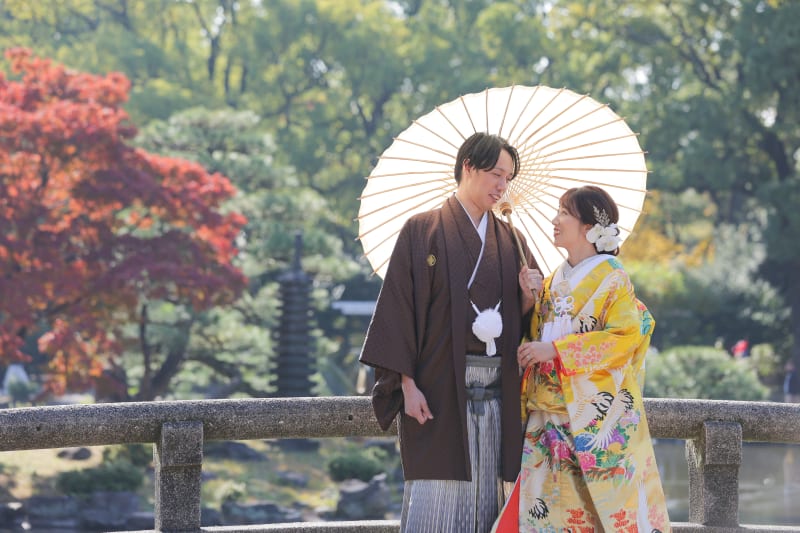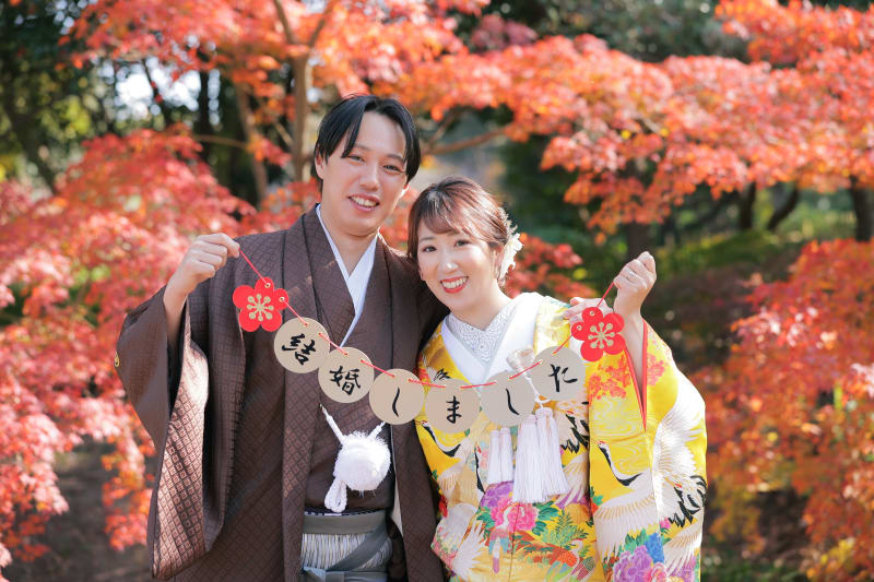 鶴舞公園で撮影していただきましたお二人の写真をご紹介いたします♪