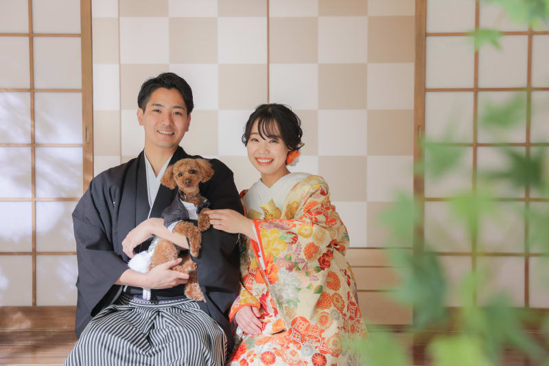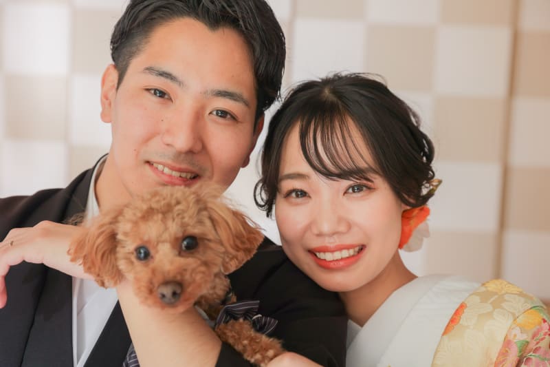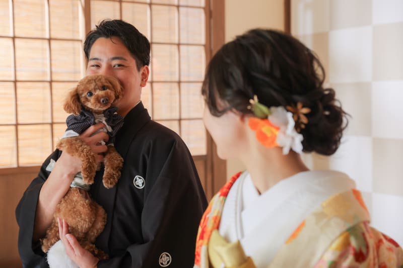わんちゃんとの撮影もご新郎様に抱っこしていただけるのでお顔の近くで一緒に撮れます♪