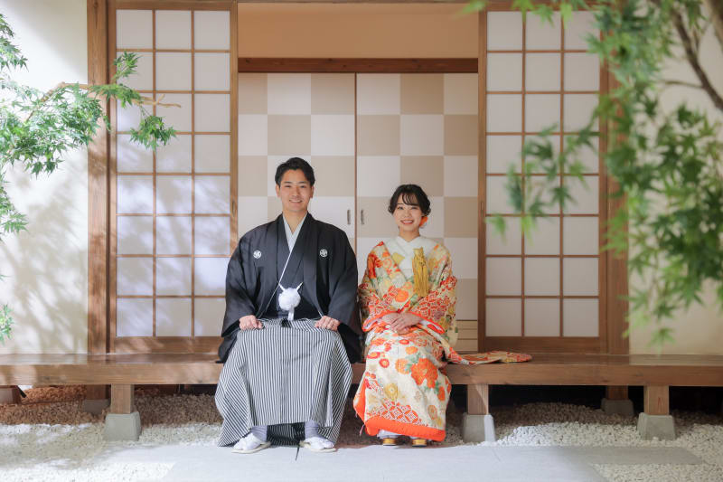 和室や縁側、梅の水墨画など和ならではな背景があります◎