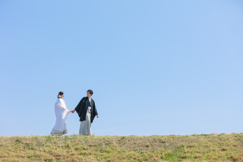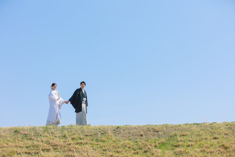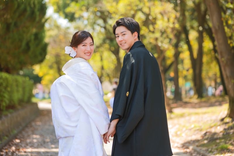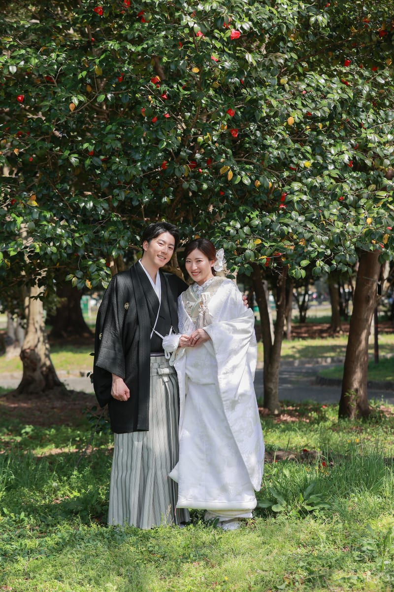 緑に囲まれての撮影は白無垢がとても映えますね♪