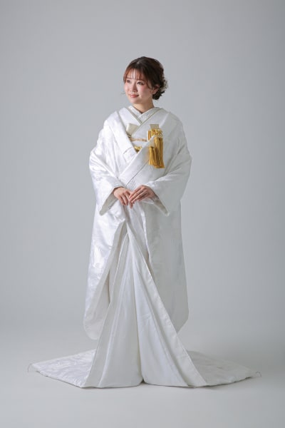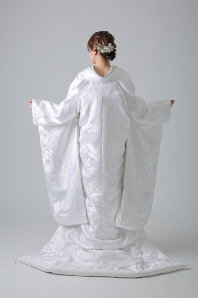 純白のベースに光沢感のある鶴や秋草が浮き出る白無垢です。