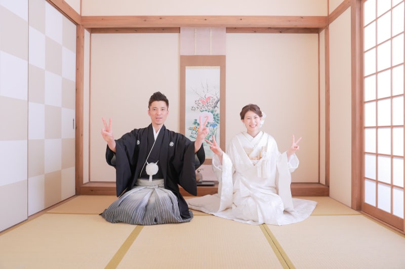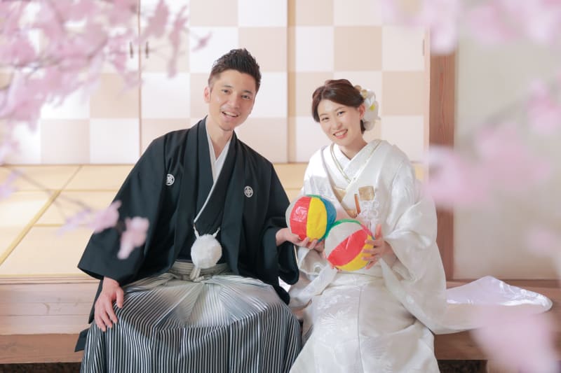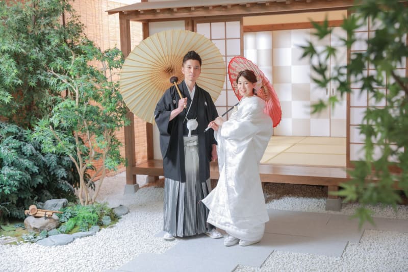 栄の定番和装スタジオの屋内庭園で撮影していただきましたおふたりのお写真をご紹介いたします!