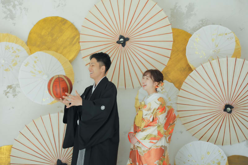 趣味がバスケの新郎様はバスケットボールをお持ち込みいただき、撮影いたしました。