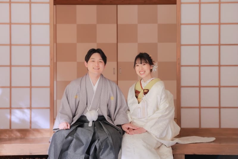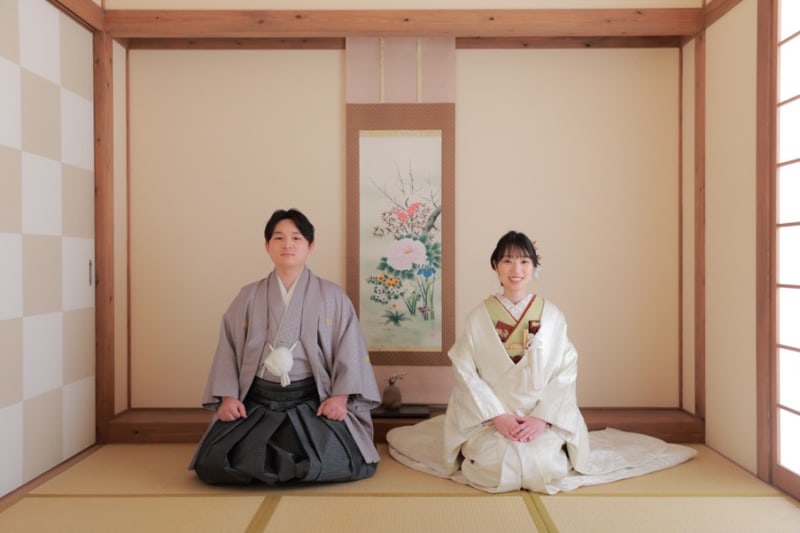 本格的な茶室スタジオで撮影する、和装の結婚写真