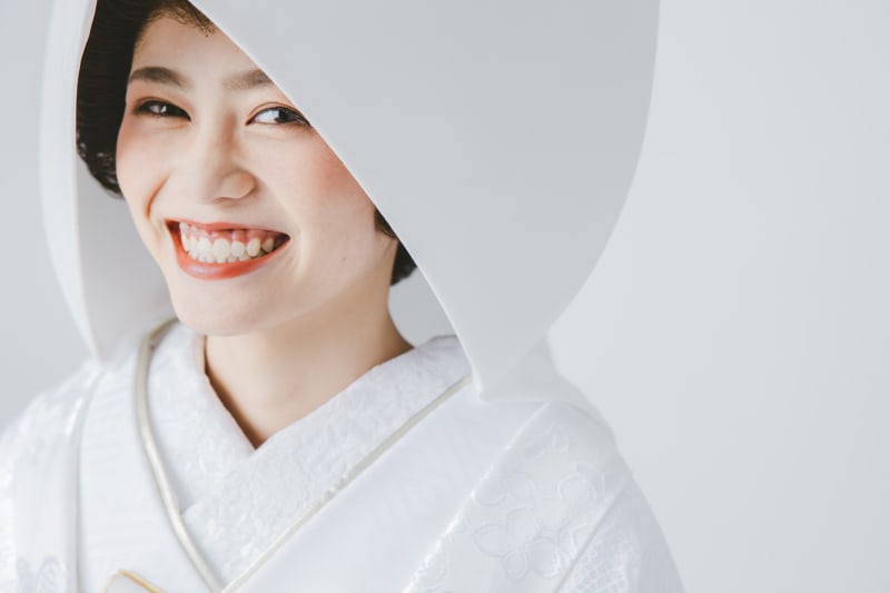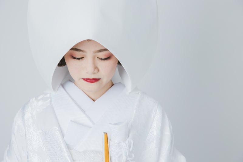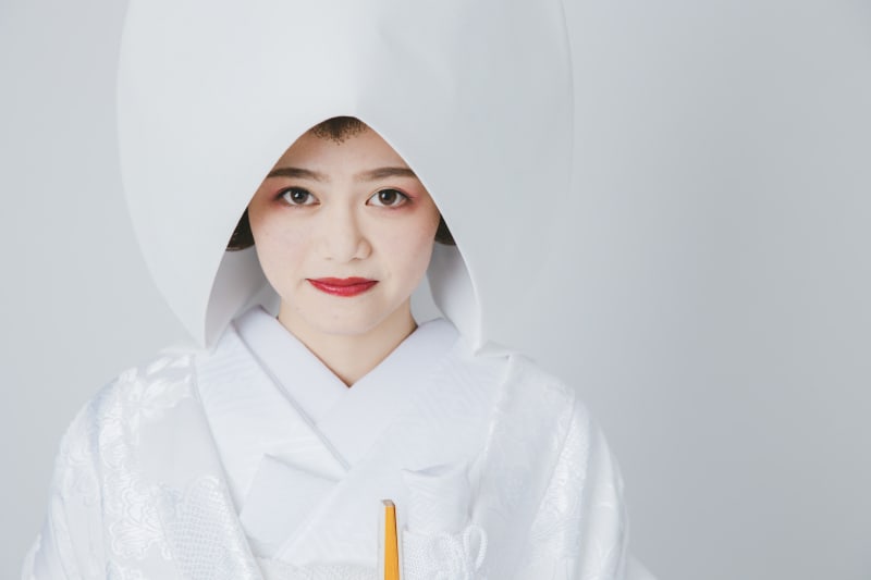 綿帽子には、挙式まで新郎以外の人に顔を見せないという意味が込められています。 ウェディングベールと同じような役割を果たしており、新婦の顔が見えないことから花嫁の恥じらいを表しているとも言われています。また 顔を隠すことで魔除けの意味もあるとされており、新婦を寒さやホコリだけでなく、邪悪なものからも守っている意味もあります。