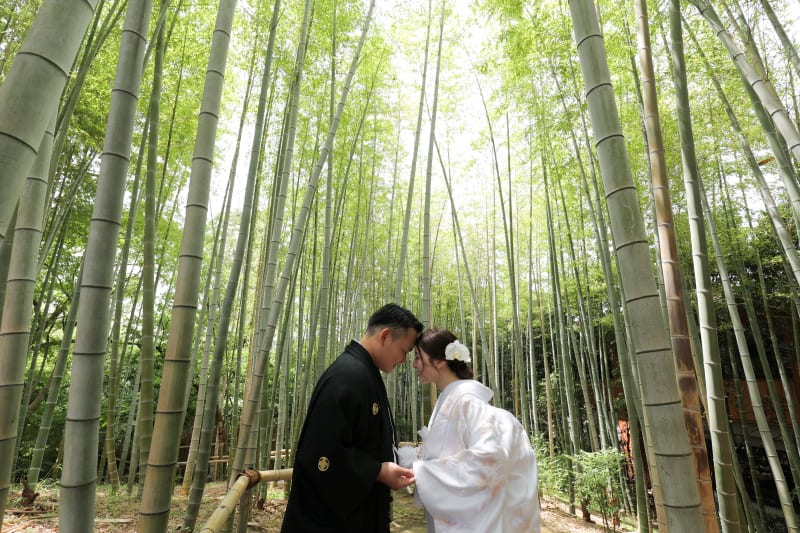 また、竹林でのお写真は、ご新婦様の白無垢をより美しく見せてくれますよね!