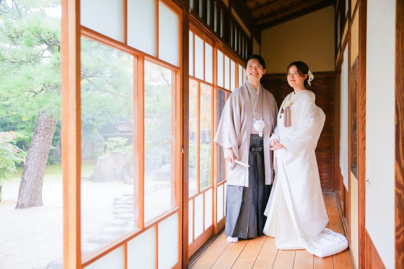 本格的な茶室スタジオで撮影する、和装の結婚写真
