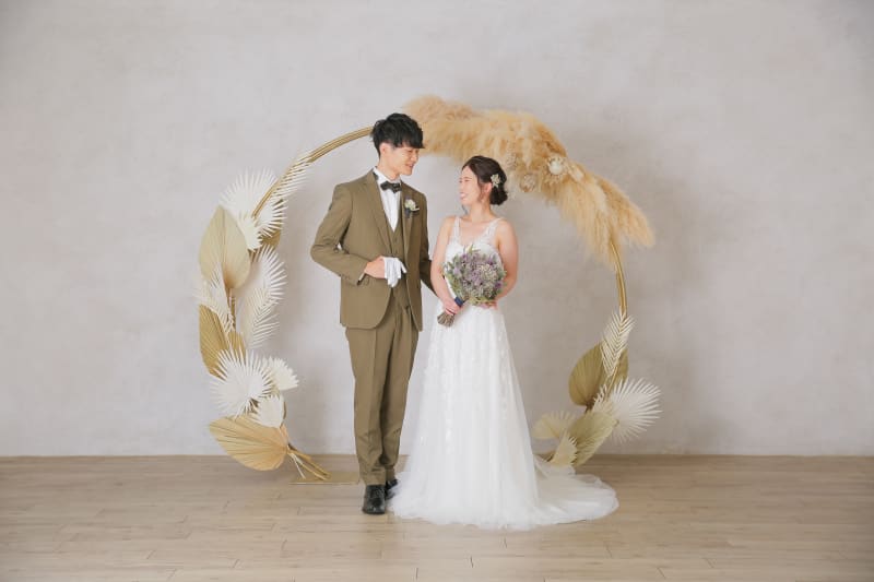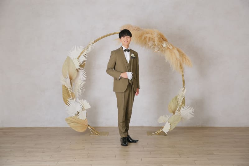 新郎様はカーキのタキシードでお洒落に着ていただきました。