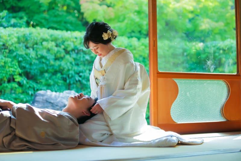 本格的な茶室スタジオで撮影する、和装の結婚写真
