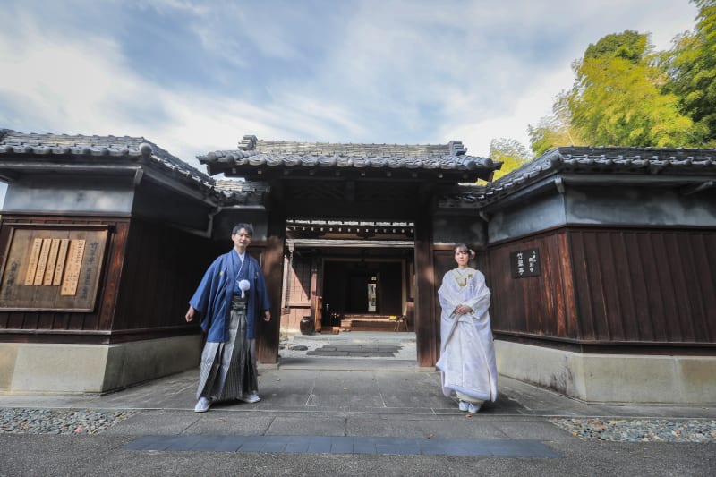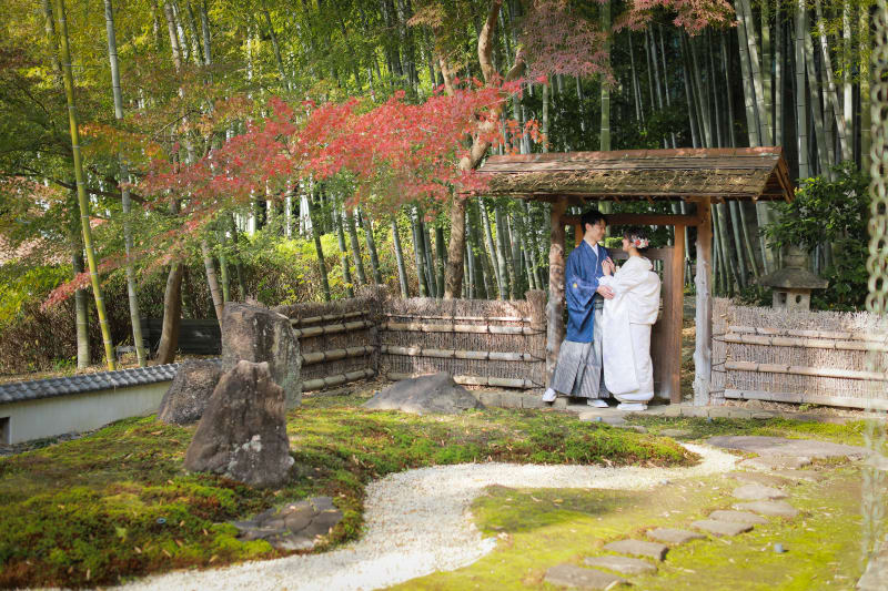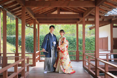 本格的な茶室スタジオで撮影する、和装の結婚写真