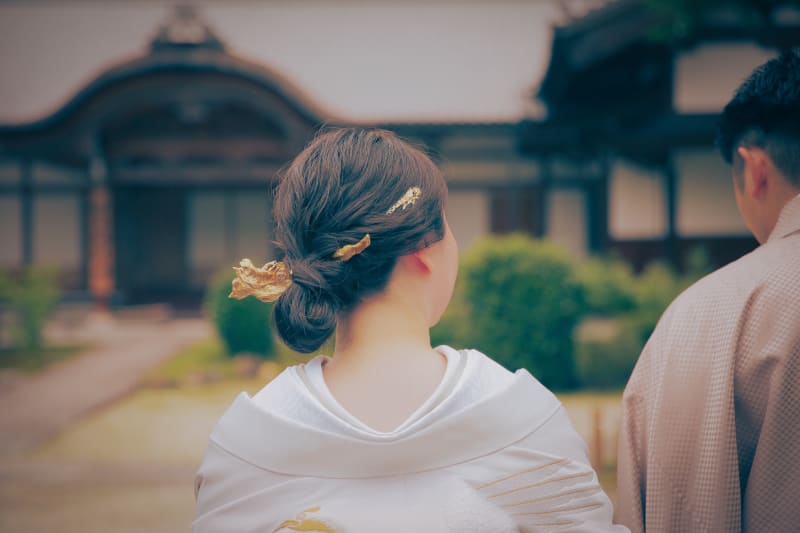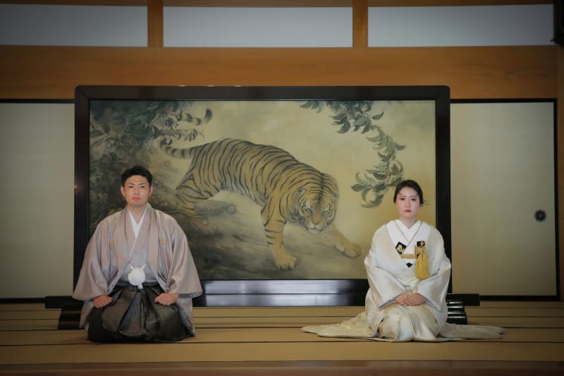 本格的な茶室スタジオで撮影する、和装の結婚写真