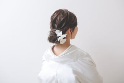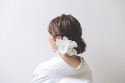 ヘアは定番のシニヨン×胡蝶蘭♪