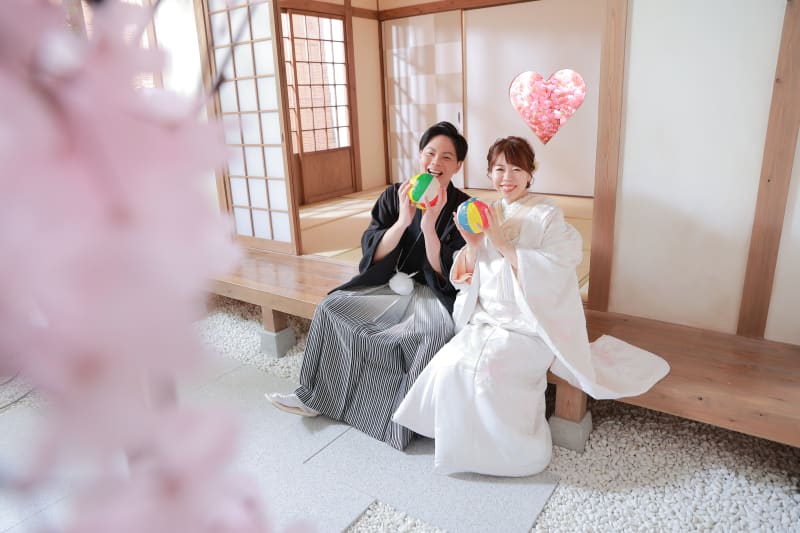 和装ならではのアイテムで、お二人ともとってもいい表情ですね!