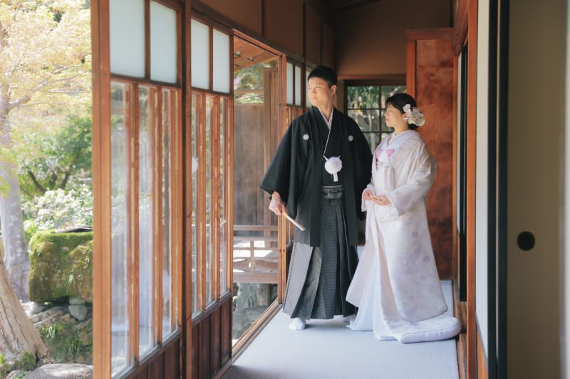 本格的な茶室スタジオで撮影する、和装の結婚写真