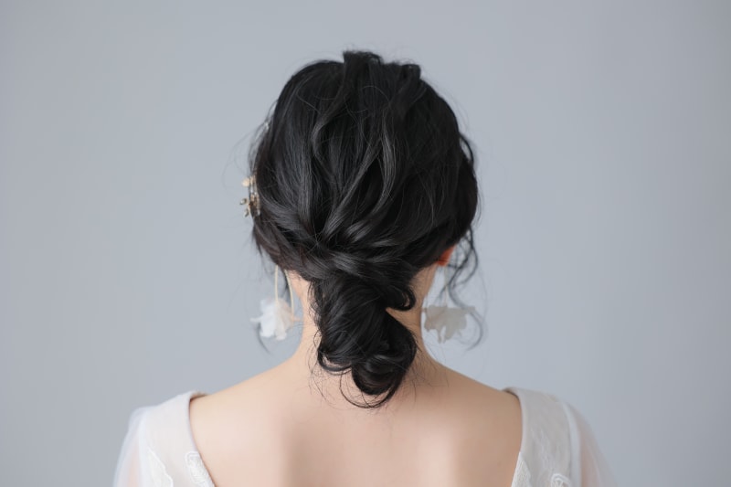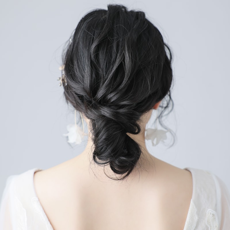 トップはゆるーく、シニヨン部分は作り込みすぎないとことんルーズな雰囲気に。