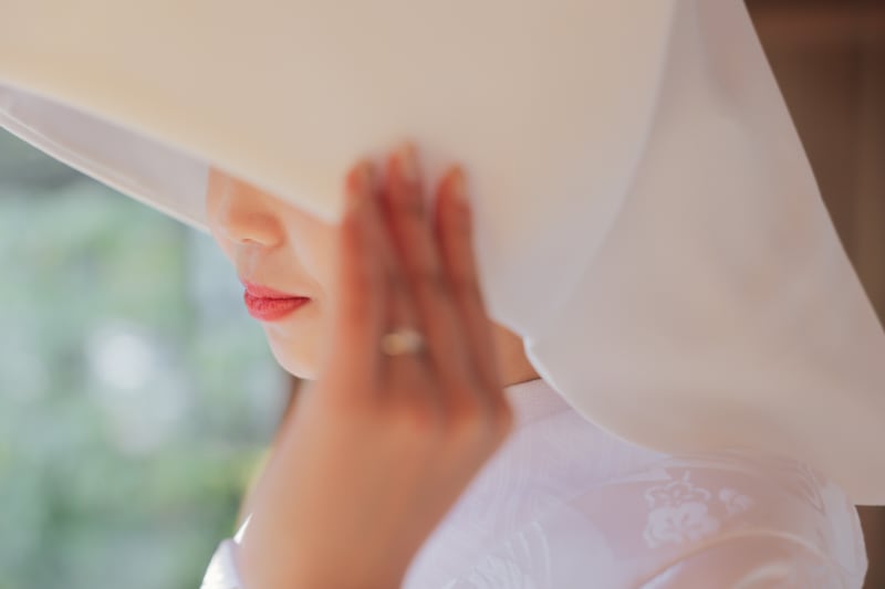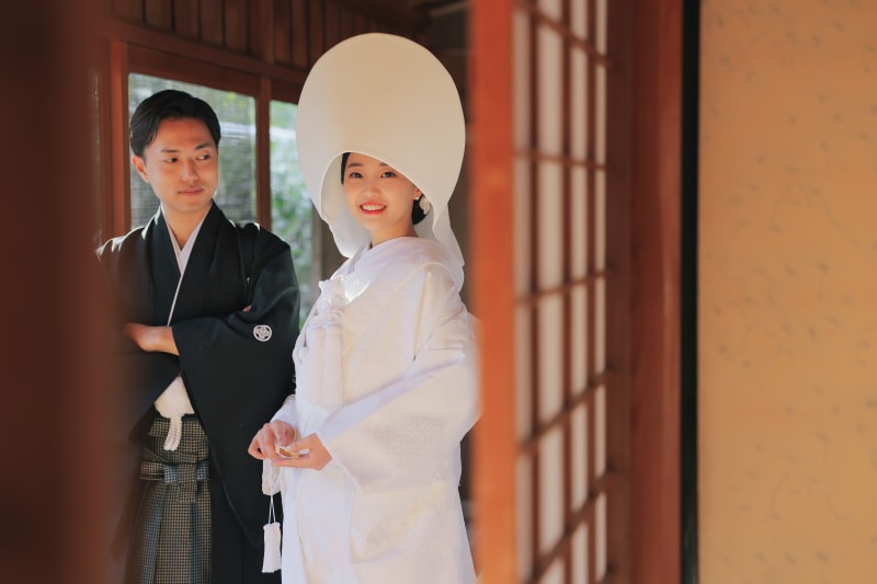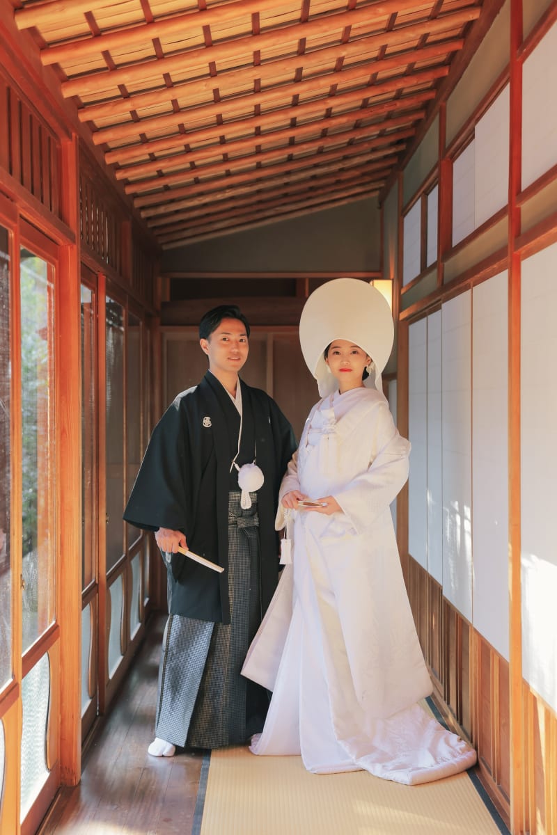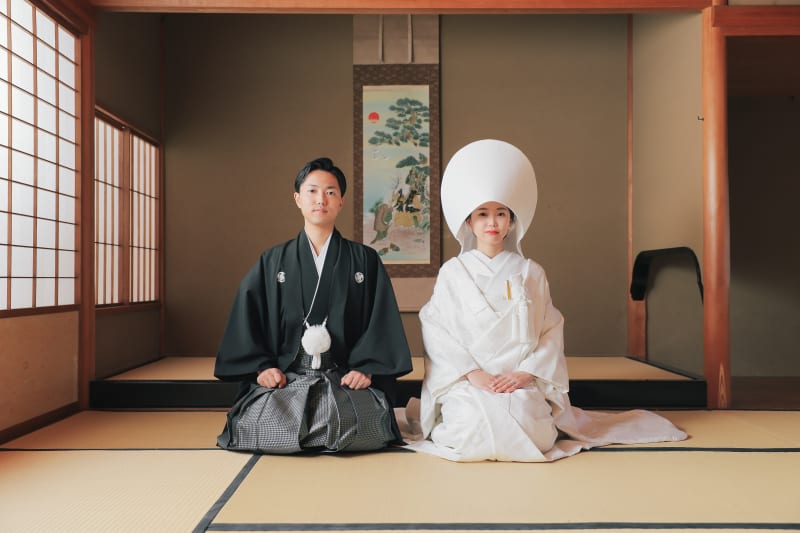 本格的な茶室スタジオで撮影する、和装の結婚写真