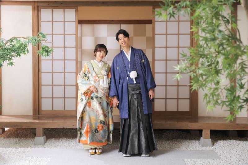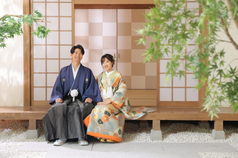 本格的な茶室スタジオで撮影する、和装の結婚写真