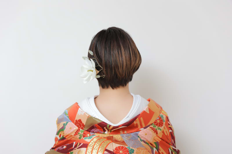 着物の時は髪をアップにしなきゃいけないんじゃないか?髪の毛は伸ばさなきゃいけない??と悩んでいる方も多いと思いますが、ショートの方はそのままでも十分かわいい雰囲気になりますので、ぜひご覧ください✨