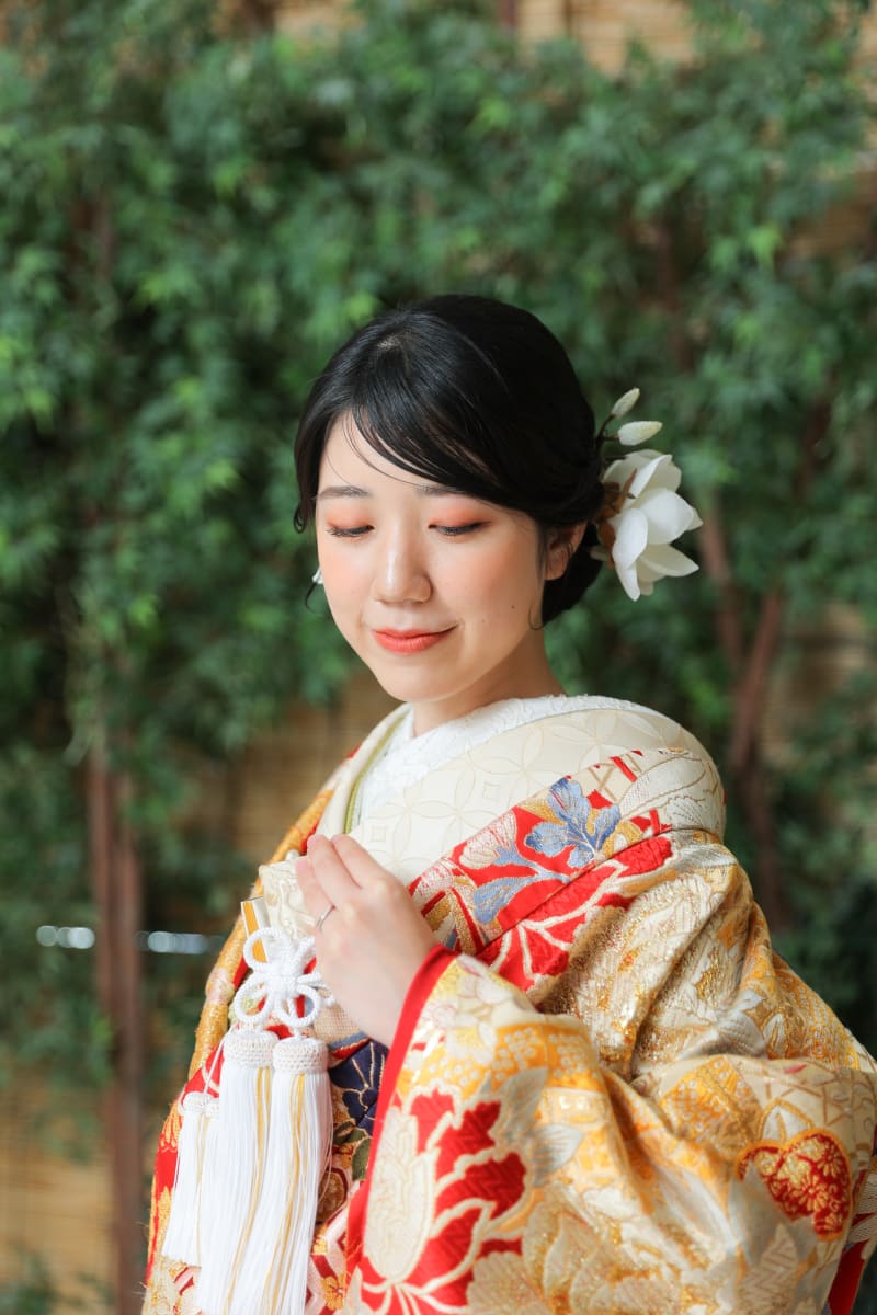 屋内庭園スタジオ 白無垢と色打掛2着✨オレンジメイク