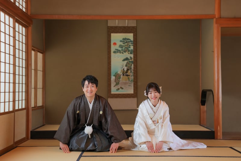 本格的な茶室スタジオで撮影する、和装の結婚写真