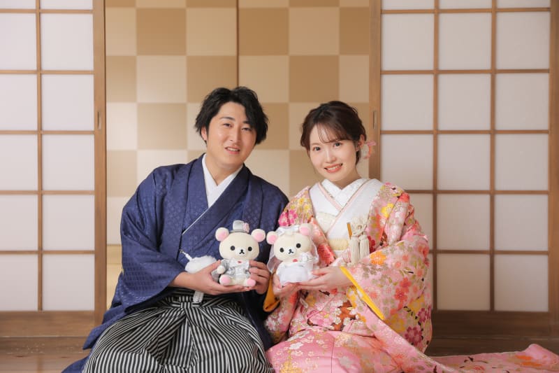 本格的な茶室スタジオで撮影する、和装の結婚写真