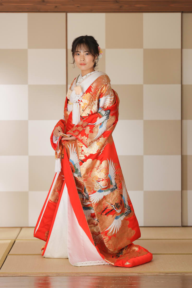 色打掛といえば赤いものを想像される方も多いと思いますが、赤はやっぱり華やかでいいです✨
