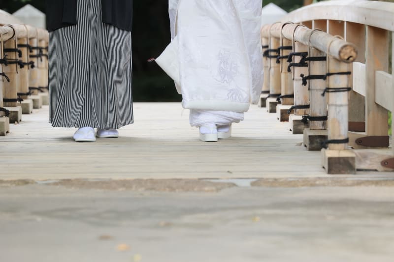 本格的な茶室スタジオで撮影する、和装の結婚写真