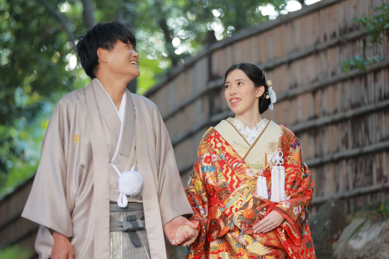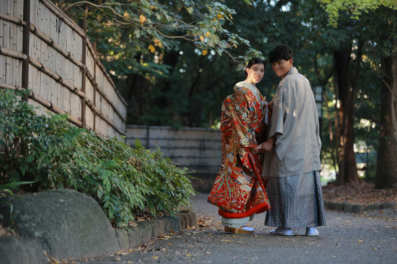 本格的な茶室スタジオで撮影する、和装の結婚写真
