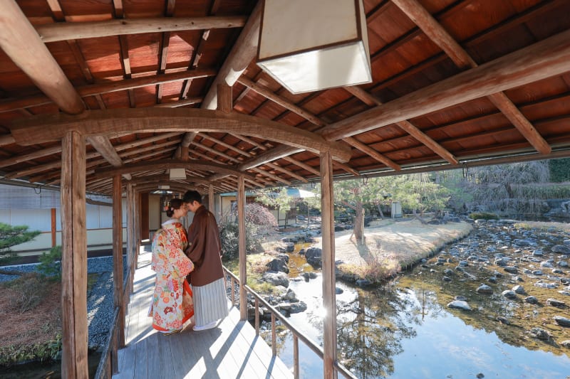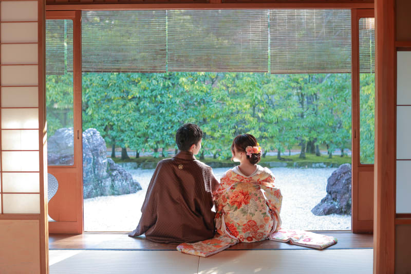 本格的な茶室スタジオで撮影する、和装の結婚写真
