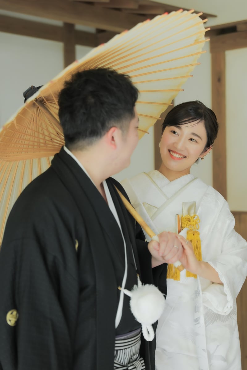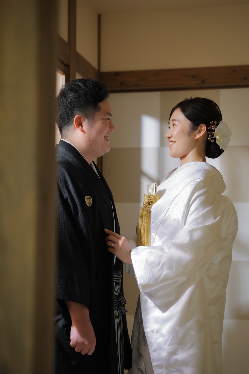新郎様のことを覗き込む新婦様がかわいいです🥰