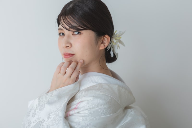 和装ではシンプルなシニヨンスタイルをご希望いただきました! 髪飾りには胡蝶蘭をおつけさせていただきました!