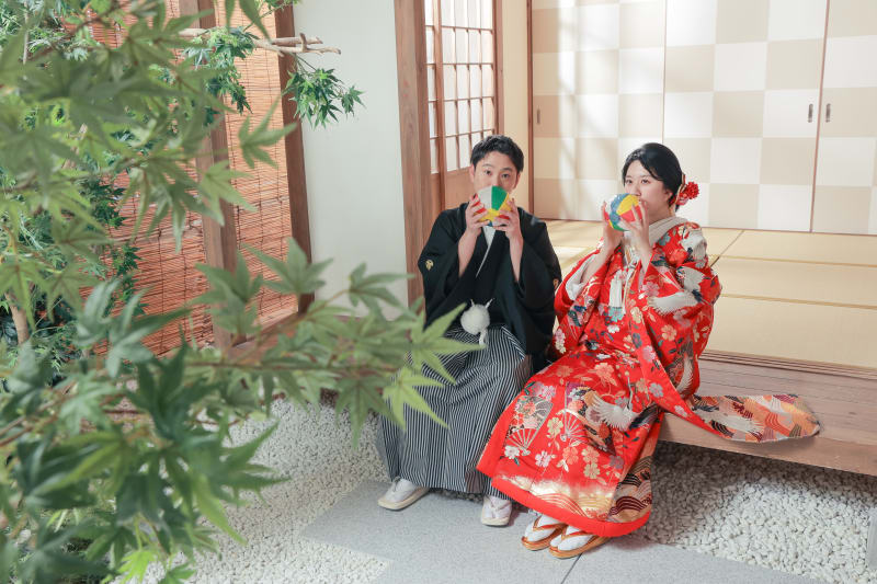 〈 和装 〉ご来店回数 2 回(オンライン相談会の場合は1回) 撮影相談会 → 撮影当日 (衣装選びは撮影当日に行います) → 商品の発送