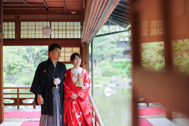 本格的な茶室スタジオで撮影する、和装の結婚写真
