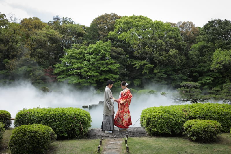 先日撮影させていただきました、大濠日本庭園の撮影風景です🌿