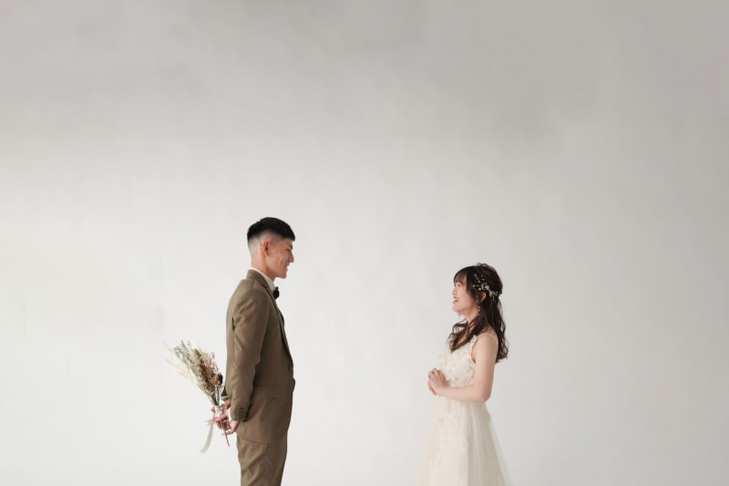 シンプル背景なだけに新郎新婦様の雰囲気や衣装がより際立って見えるのでおしゃれに!こだわりたい!魅せたい!方にはとってもオススメ!