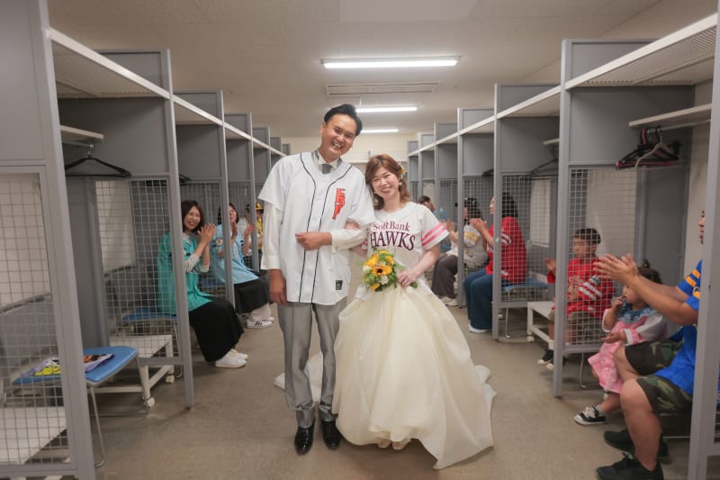 ↓ロッカールームではご両家の皆さんからの祝福の拍手の中、登場!!!