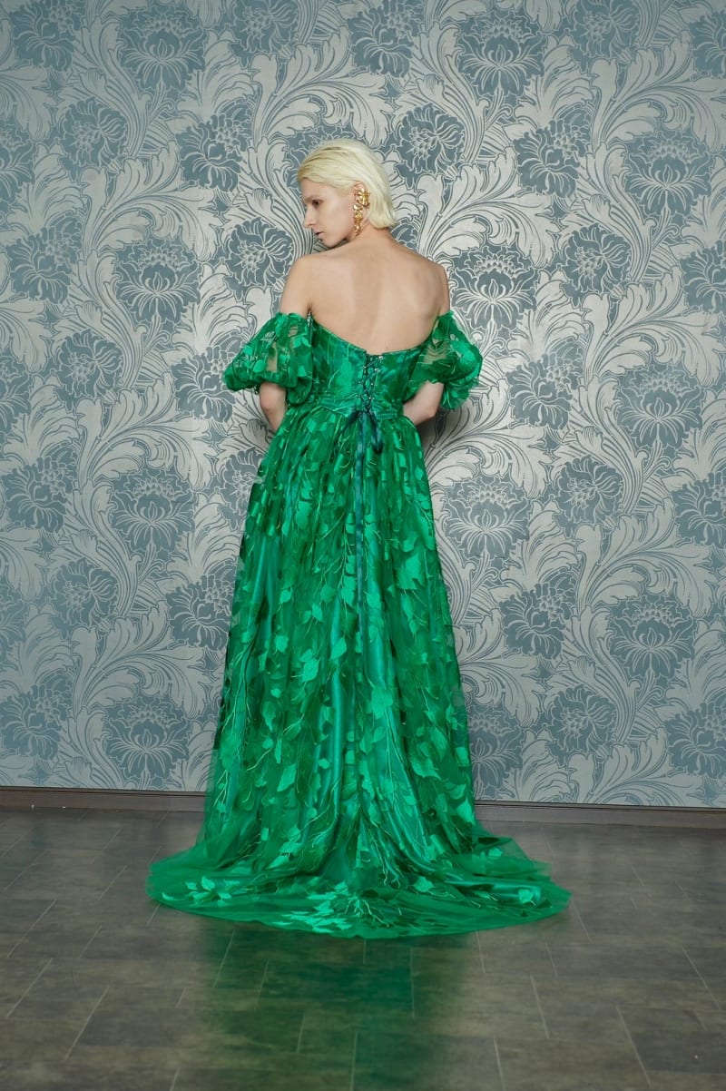 鮮やかでおしゃれなグリーンドレス