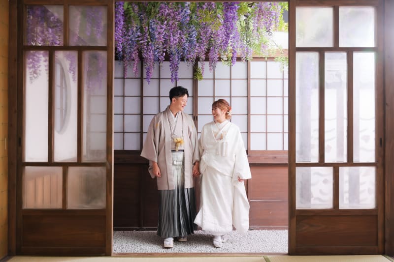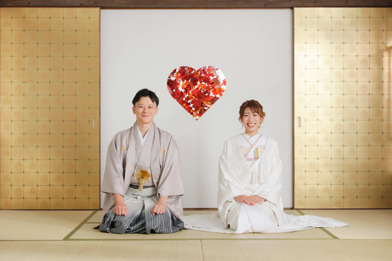 本格的な茶室スタジオで撮影する、和装の結婚写真