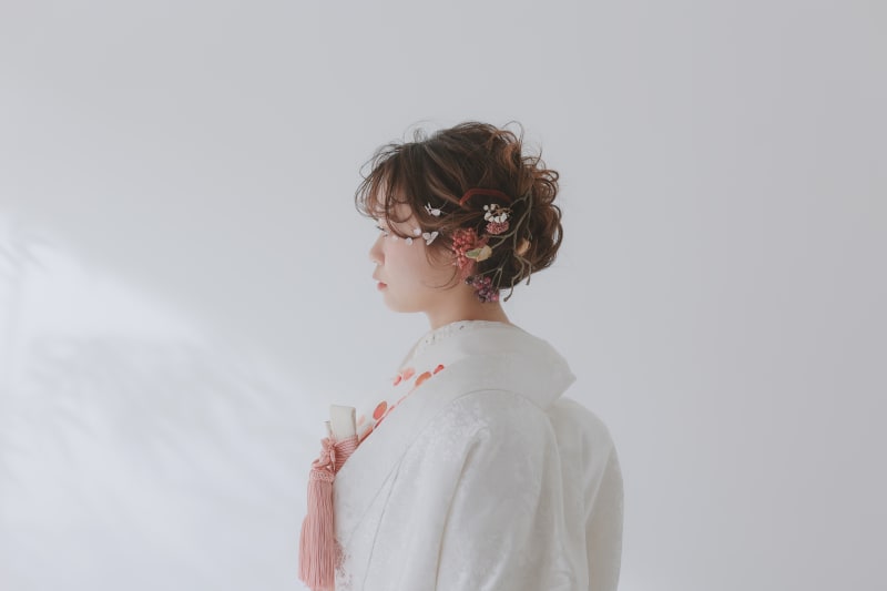 顔全体が見えないことで、神秘的で奥ゆかしい印象を演出できます◎