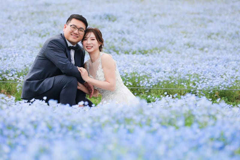 ドレスに着替えて、ネモフィラ咲き誇る海の中道へ💙