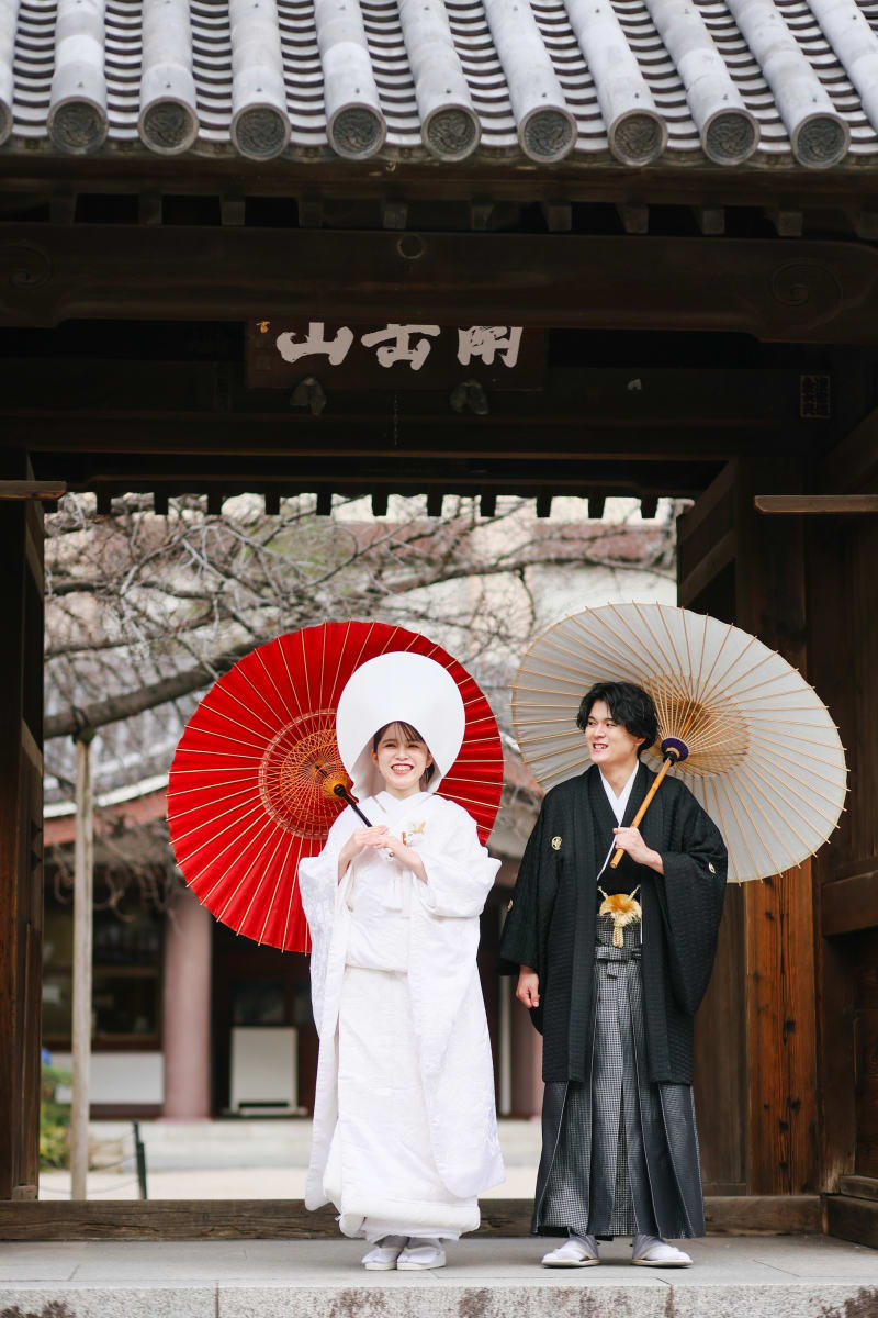 本格的な茶室スタジオで撮影する、和装の結婚写真